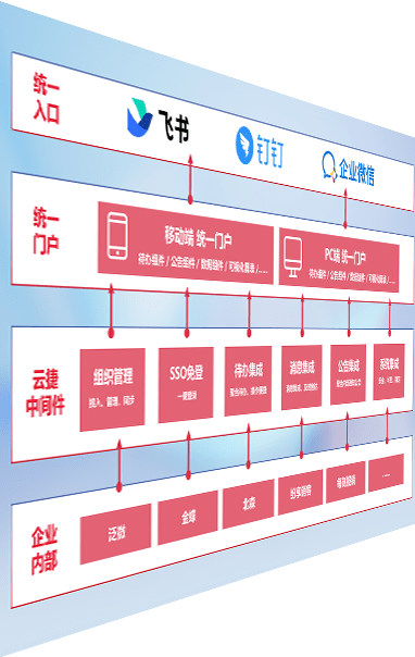对协作平台提供支持服务,,,支持企业应用与协作平台对接,,,,包含组织同步、、、消息集成、、、待办集成等。。支持目前主流的协作平台:钉钉、、、、企微和飞书。。